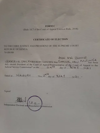 Justice musinga, who is the judiciary's committee on elections chairperson.